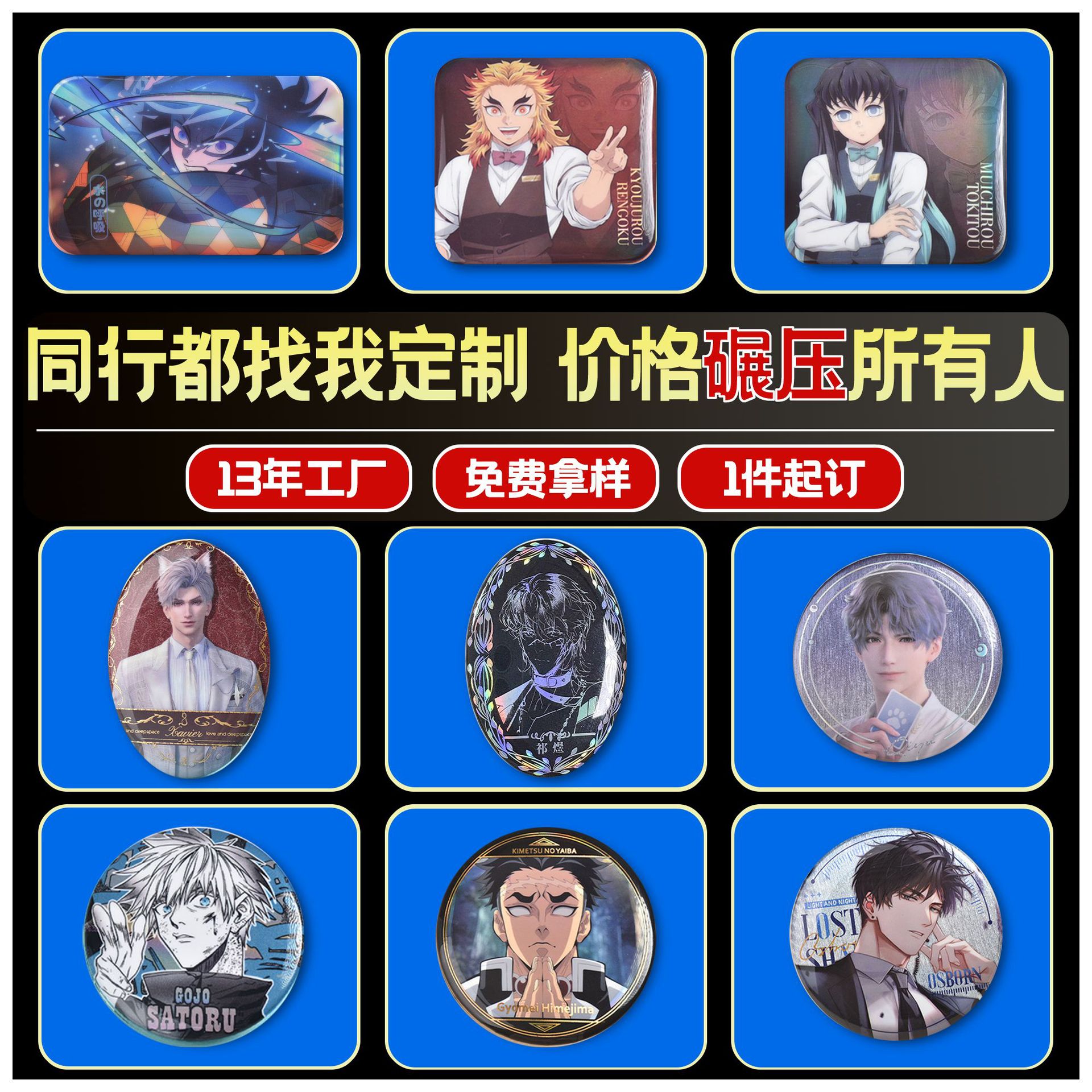 ブリキ製バッジ、カスタムメイドの金属バッジ、胸章、ピンバッジ、漫画アニメ周辺グッズ、二次元バッジ、カスタムオーダー