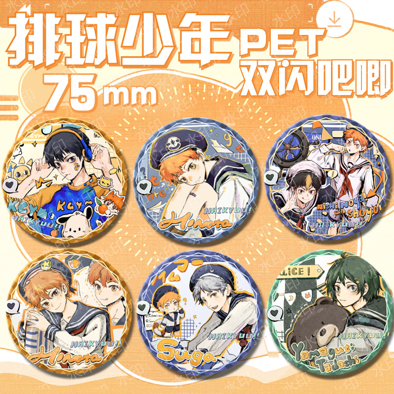 Pq少年petダブルフラッシュバッジ日向翔陽影山飛雄西谷夕レーザー細閃胸章谷子