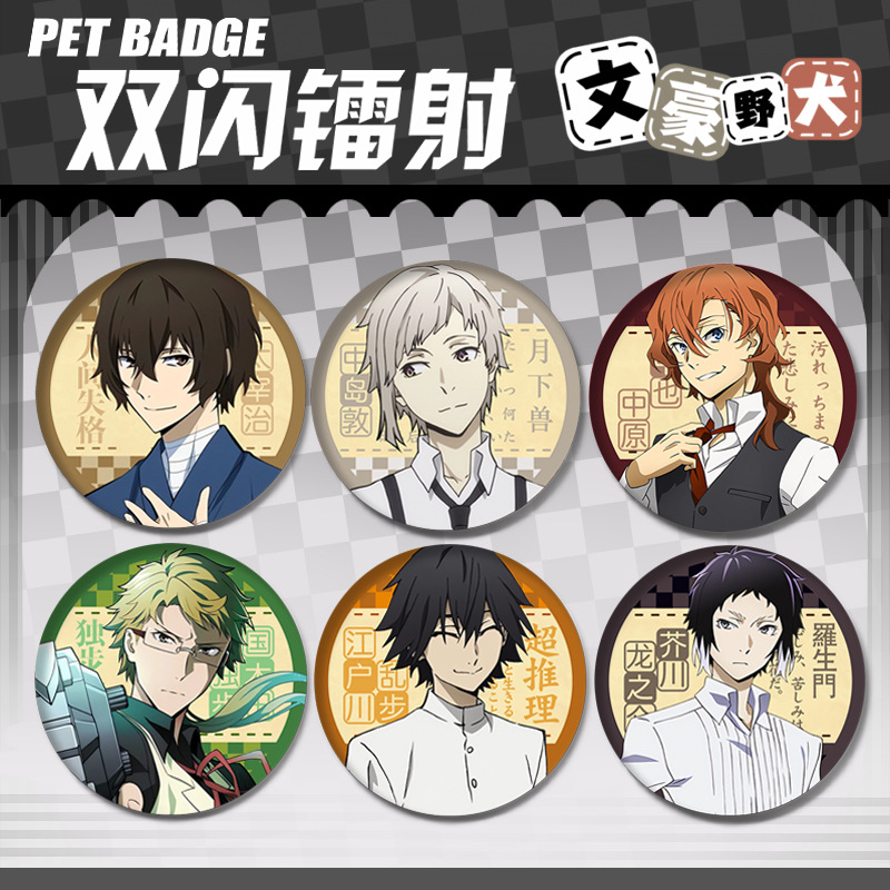 文豪野犬PETダブルフラッシュバッジ中島敦太宰治75mmレーザー細閃胸章谷子ブローチ