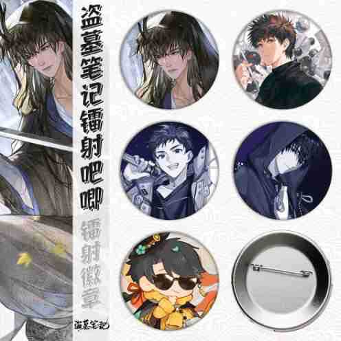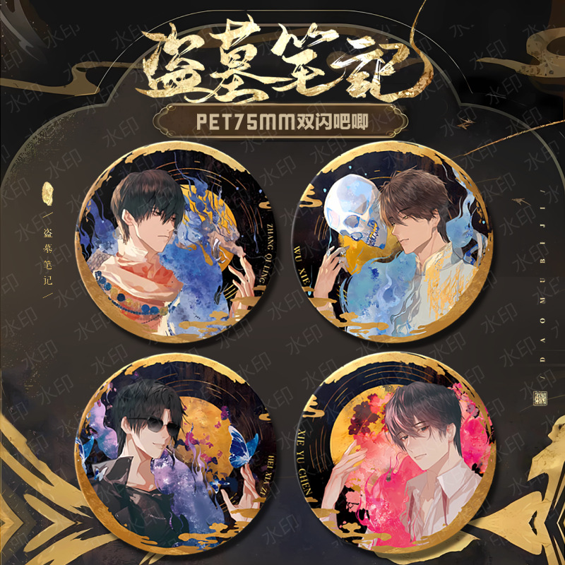 盗墓ノートPETダブルフラッシュバッジ張起霊無邪気75レーザー細閃胸章ブリキ谷子