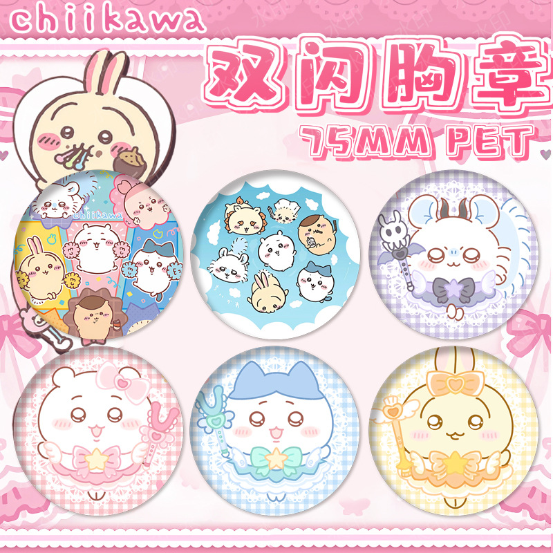 ChiiawaジイカワPETダブルフラッシュバッジ75mmレーザー細いフラッシュバッジブリキブローチ