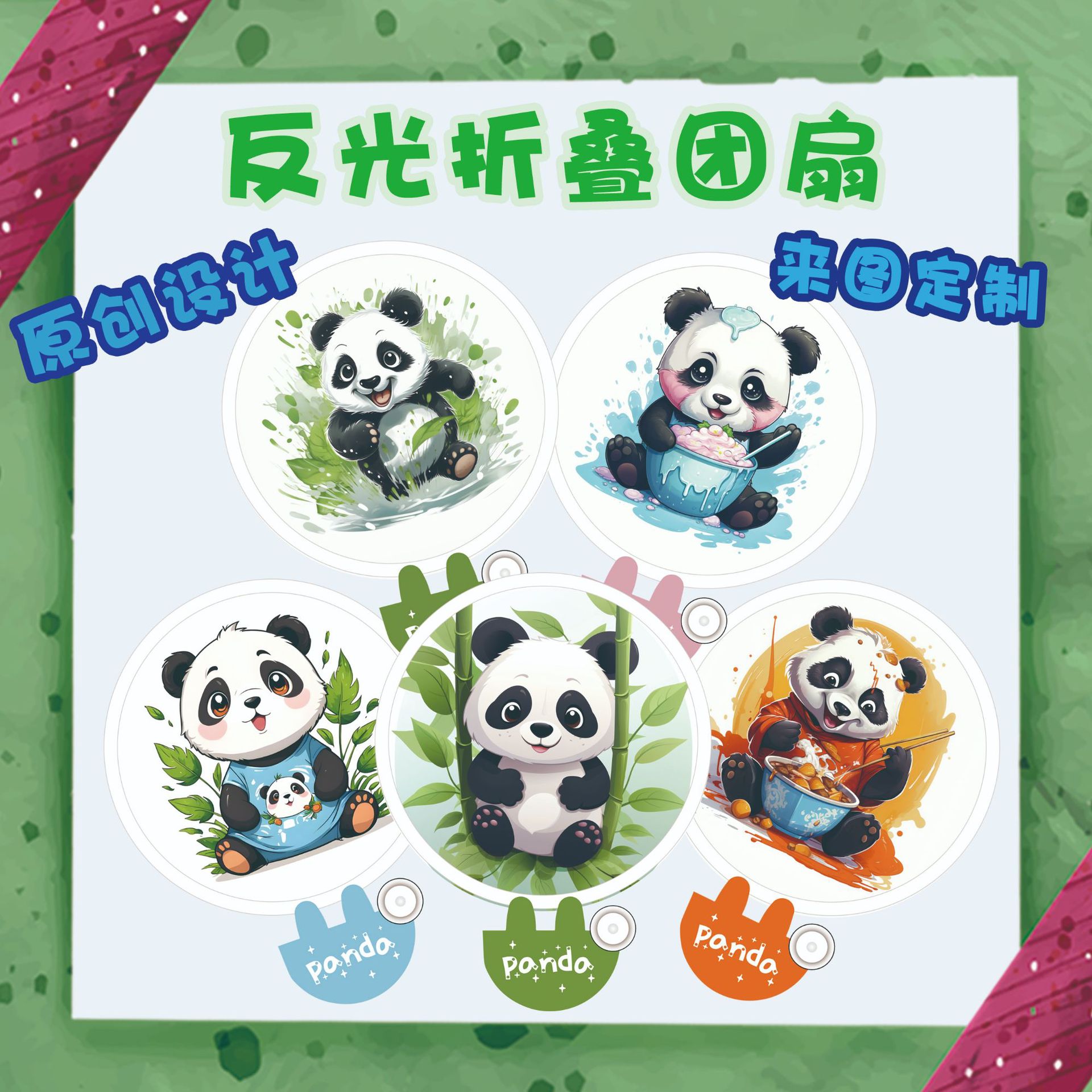 新型パンダpanda折り畳み扇ミニ便利団扇広告扇推進扇折り畳み飛盤扇