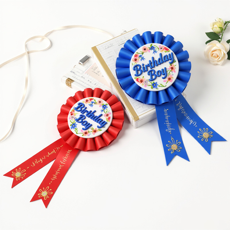 誕生日パーティーブートニアカスタムハッピーバースデーブリキリボンバッジお祝いホリデーパーティー用品