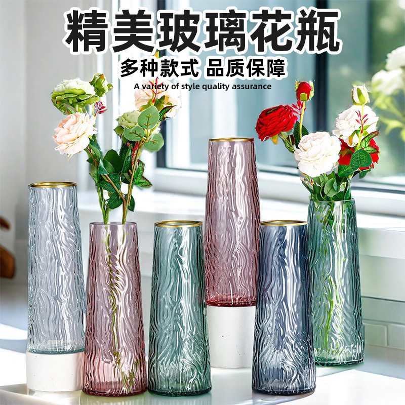 北欧極簡ins風幻彩ガラス花瓶ドライフラワー生け花ガラス瓶客間水培寝室装飾花瓶