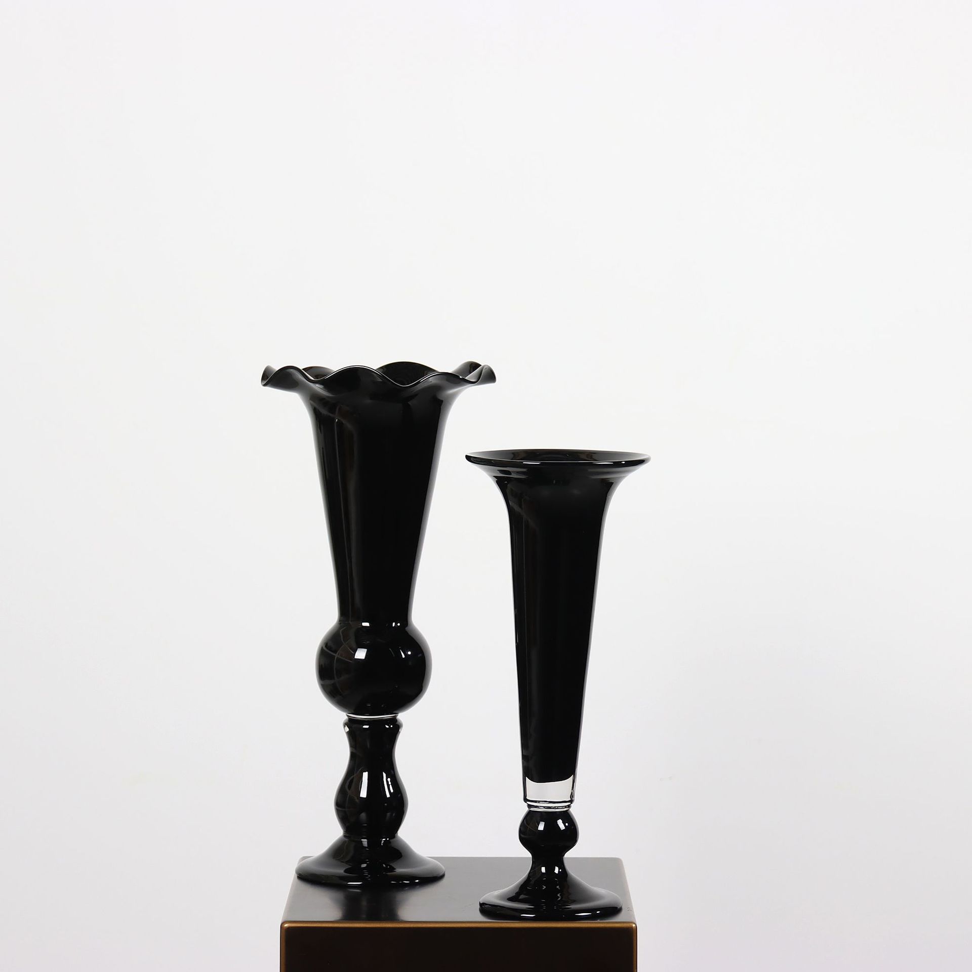 中古復古風灯黒瑠璃高脚花瓶ガラス花器シンプル装飾サンプル板間生け花置物
