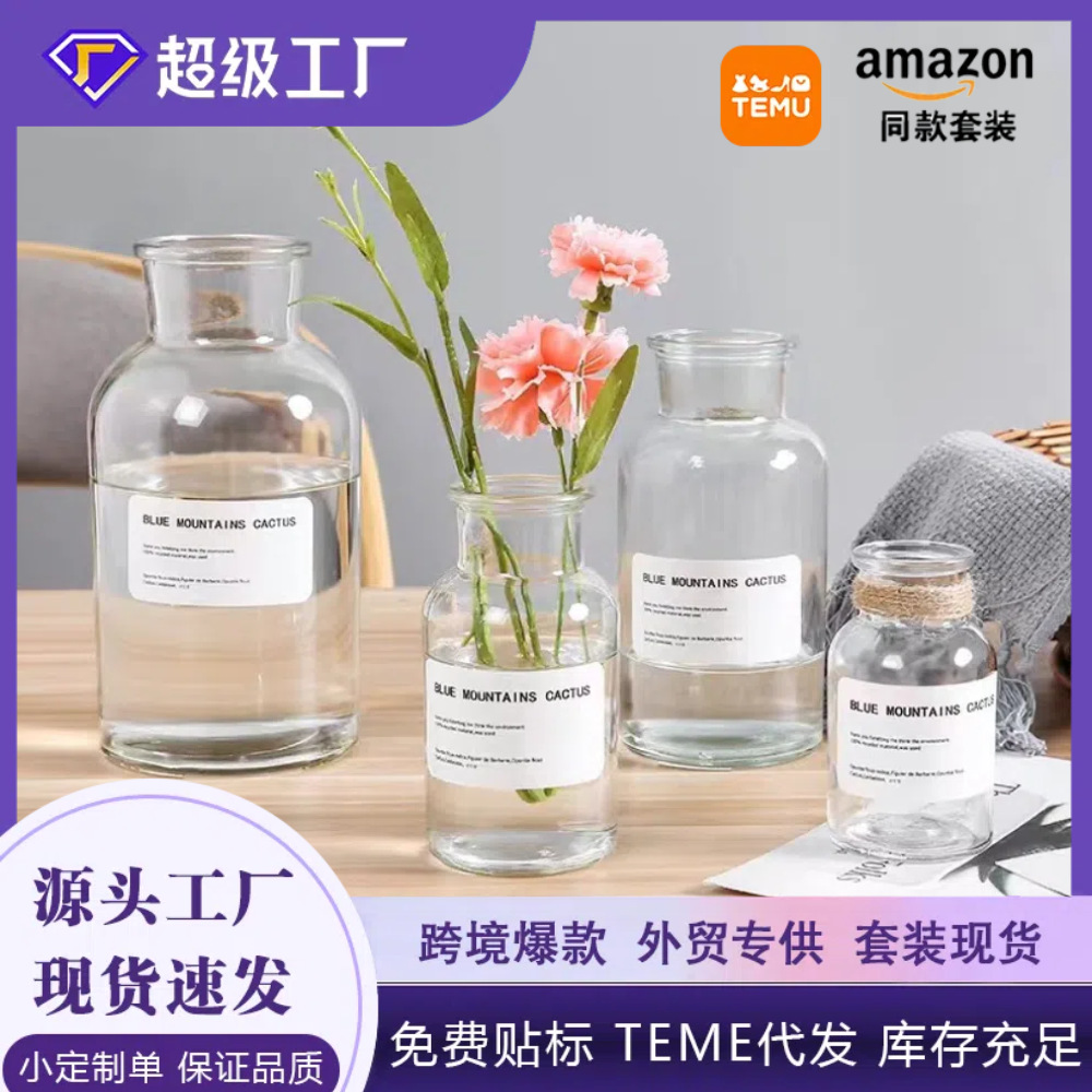 Ins透明花瓶ガラス北欧風試薬花瓶高級感ドライフラワー花瓶デスクトップ家庭装飾置物