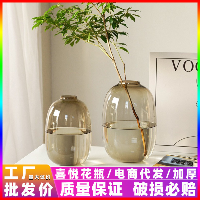 ヨーロッパ風インスタイルのグレーのガラス花瓶、オフィスデスクトップ用ドライフラワー、水耕栽培、家庭用装飾品、手作り花器