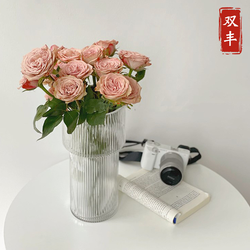 透明創意ガラス花瓶縦紋たいまつ平かめヨーロッパ風飾り花瓶花花乾花客間置物器