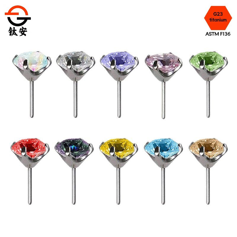 G23チタン合金四爪5Aジルコンピンタイプリップピン耳骨釘diy部品F136チタン人体穿刺アクセサリー