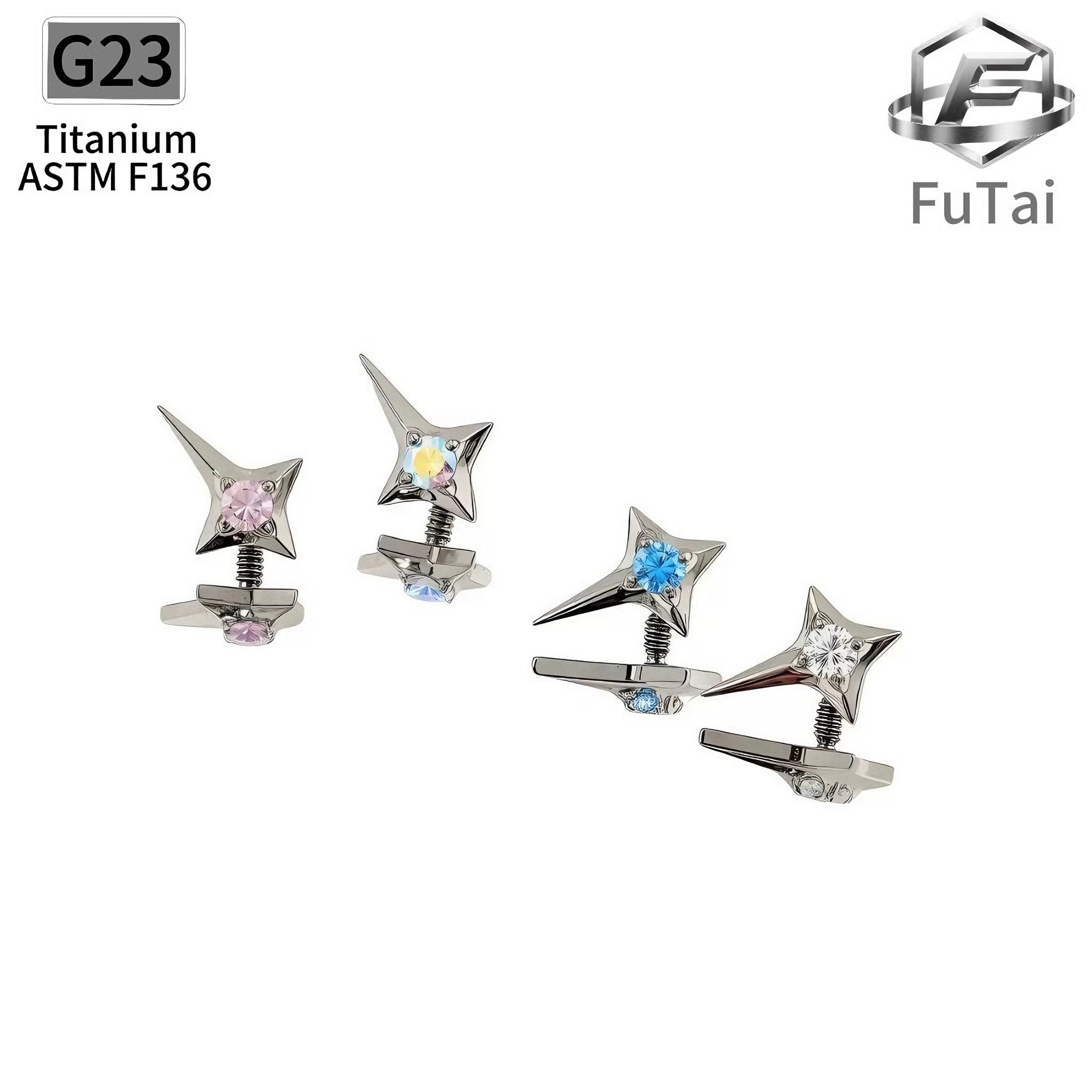 f136 チタン合金象嵌ジルコニウム四芒星 M0.9 おねじリップネイル耳骨ネイルピアスジュエリーヘッドアクセサリー卸売