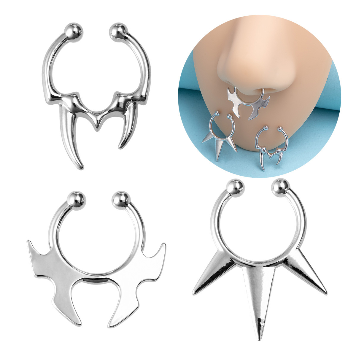 ステンレスの異形の3項の偽の鼻の環のコウモリの鋭い錐の牙の個性の潮のクールな鼻は人体の穿孔のアクセサリの卸売りを挟みます