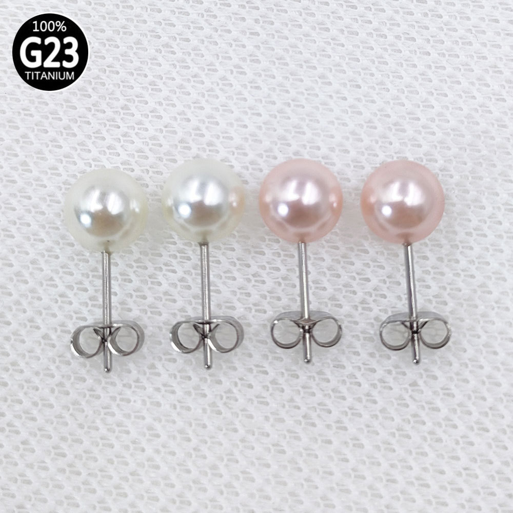 メーカー直供g23チタン材質真珠蝶ボタンピアスアクセサリー卸売り販売女性ピアス欧米流行