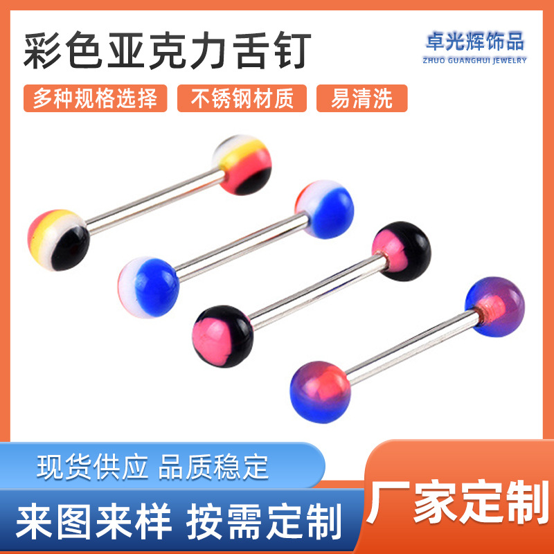 工厂现货批发彩色亚克力钉不锈钢舌钉混色直钉跨境热销穿刺饰品