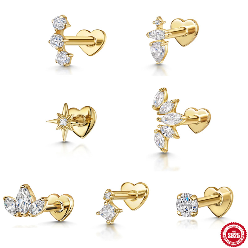 S925純銀のダイヤモンドの愛の平頭のねじの新型の馬の目の8芒星は軟骨のピアスの耳の骨の釘を穿刺します。