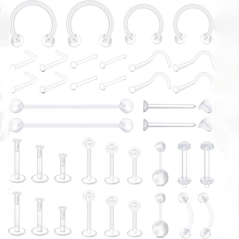 国境を越えたアクリル透明穿刺アクセサリー38点セット唇釘耳骨釘アレルギー防止へそ釘耳釘スポットバッチ