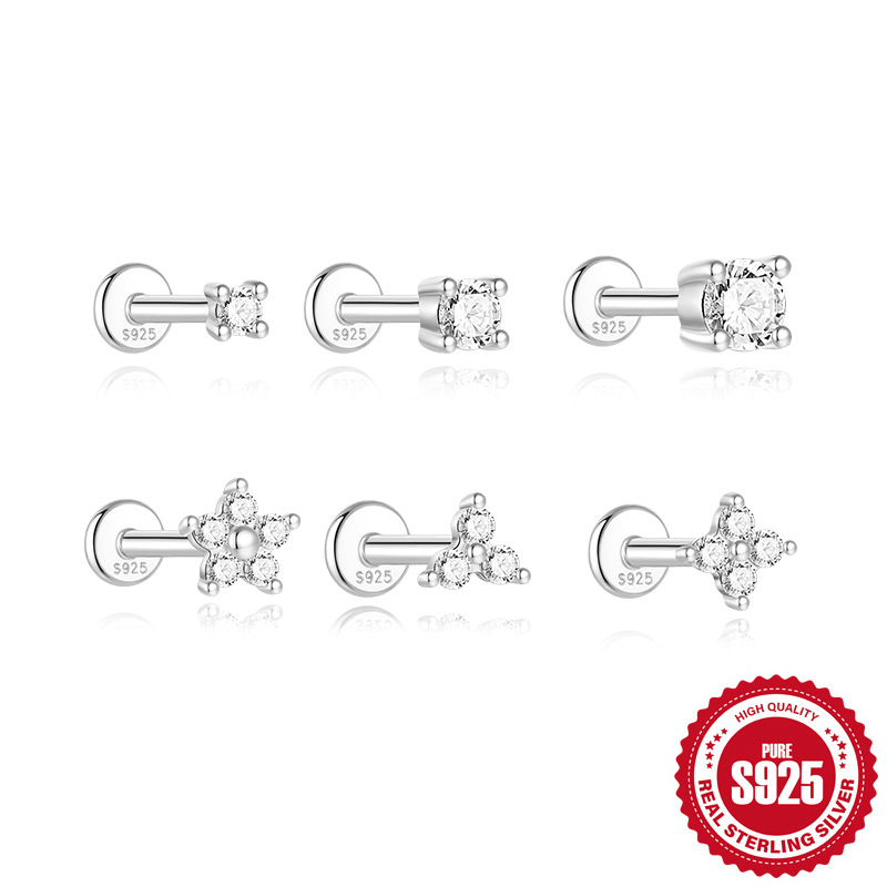 欧米ファッションinsシンプル花びら莫桑ドリルs925純銀ねじ穿刺軟骨ピアス16g耳骨釘