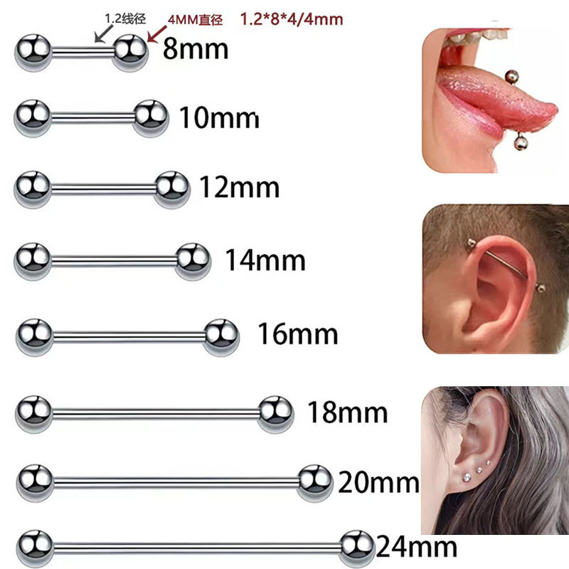 クロスボーダーのステンレスのダブルヘッドのボールの舌はまっすぐなバーベルの耳の骨の釘の乳釘の耳の橋の耳飾りの人体を刺して飾ります。