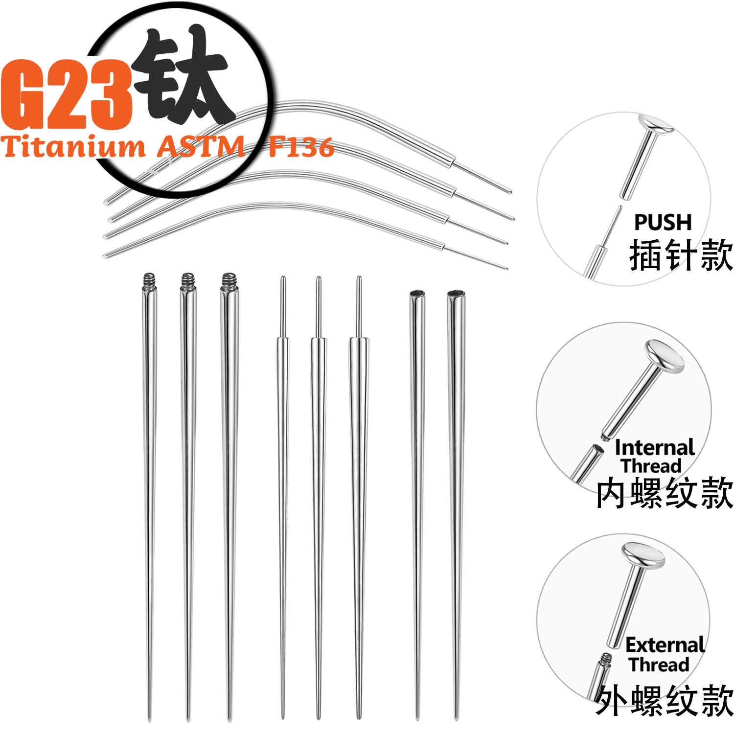 ガイドロッド穿孔補助ステンレスガイド針リップピンガイド棒チタン合金ピアスガイド針内ねじ棒