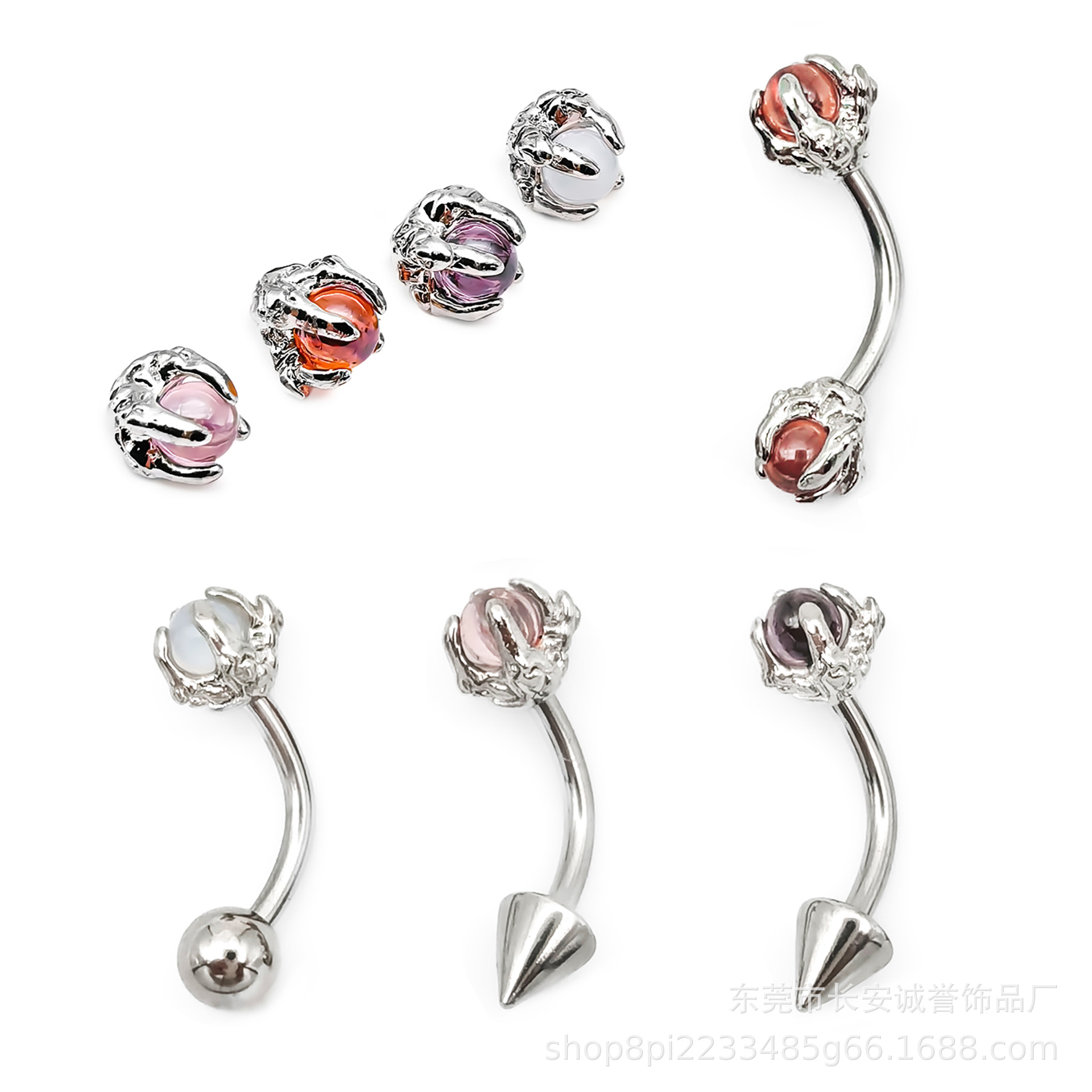 眉毛ネイル、ドラゴン爪、ジルコンリップネイル、オパールピアスジュエリー、ホットガールニッチイン、甘くてナチュラル、ヨーロッパとアメリカのステンレス