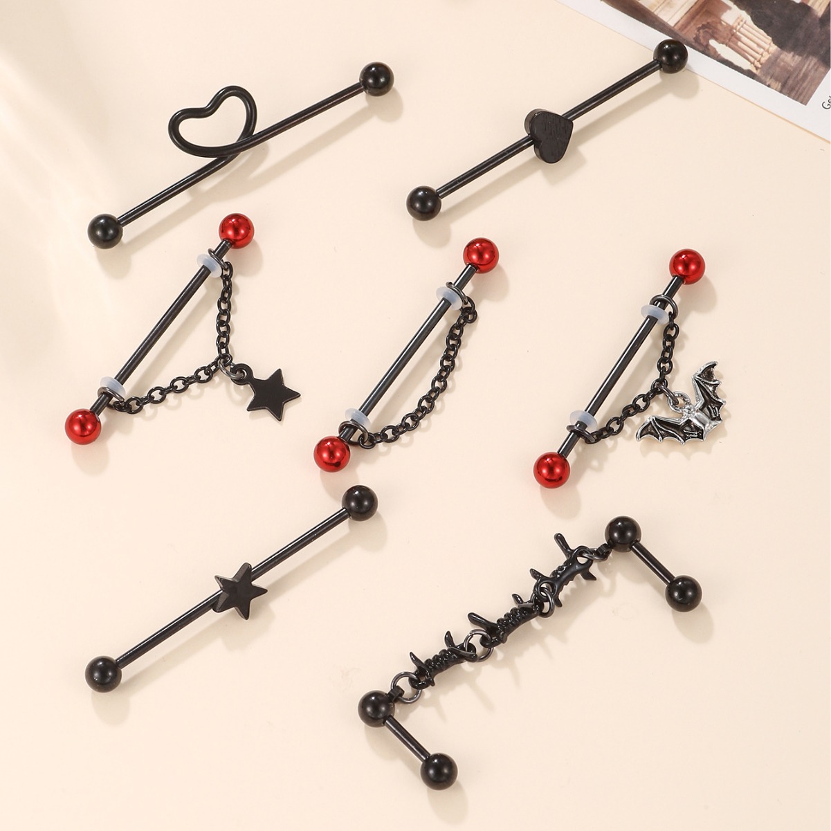 国境を越えた新製品暗黒パンク耳橋双耳洞長棒耳骨釘チェーン式耳橋愛コウモリ穿刺耳飾り
