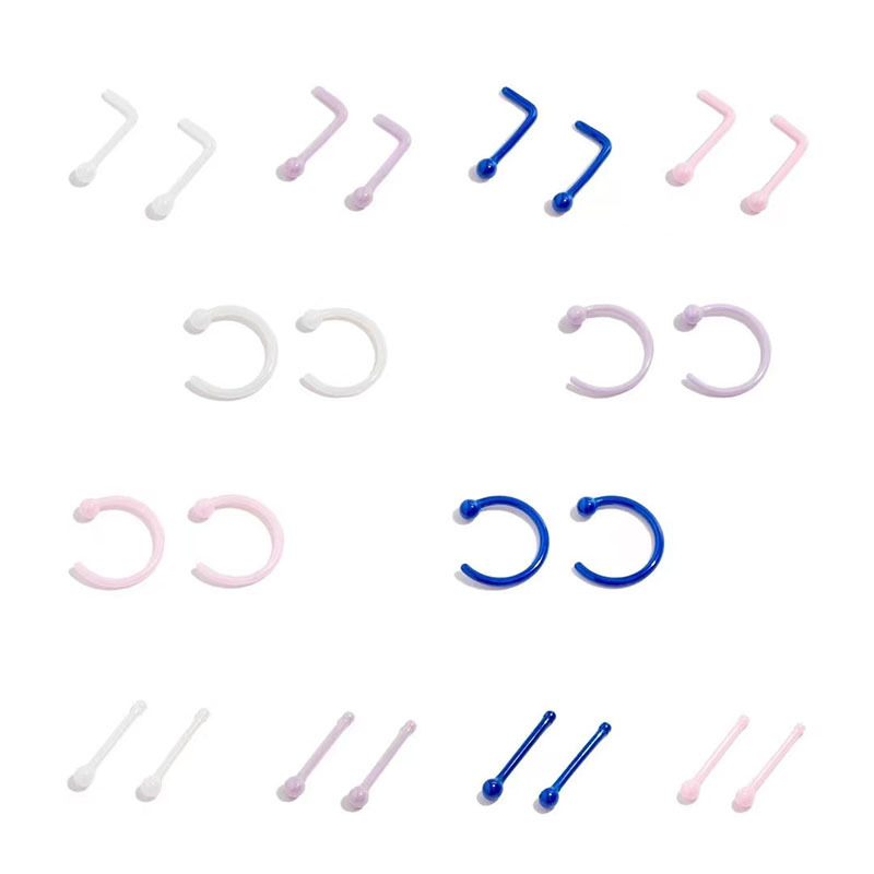 メーカー22点ステンレス製ピアスセット 鼻ピアス 鼻リング 鼻フック L型鼻ピアス シンプルイヤリング イヤーアクセサリー