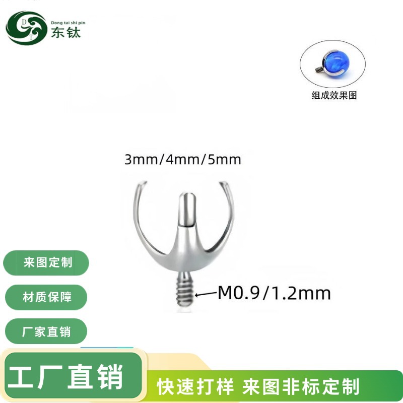 F136 チタンボール三爪空ホルダーオパール空ホルダー G23 ピアスジュエリーグリップホルダーアクセサリー外ネジ爪ドリル空ホルダー