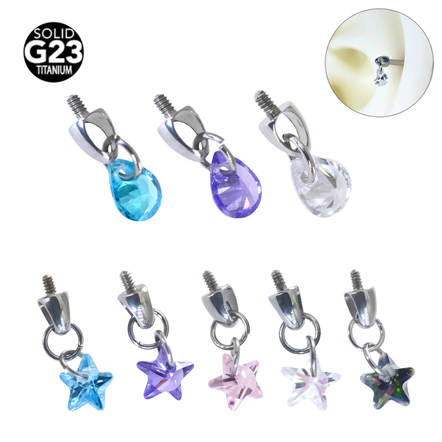 F136チタン合金水滴弾頭内歯唇釘0.9歯唇釘耳骨釘部品水晶ジルコンペンダント