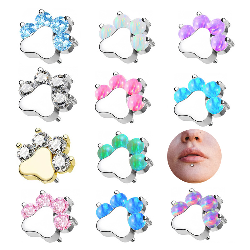 ヨーロッパとアメリカのオパールリップネイルアクセサリー、猫の爪イヤリング、ネジ付き耳骨ネイル、クマの手ジルコン耳介ネイル、ピアスジュエリー、オパール