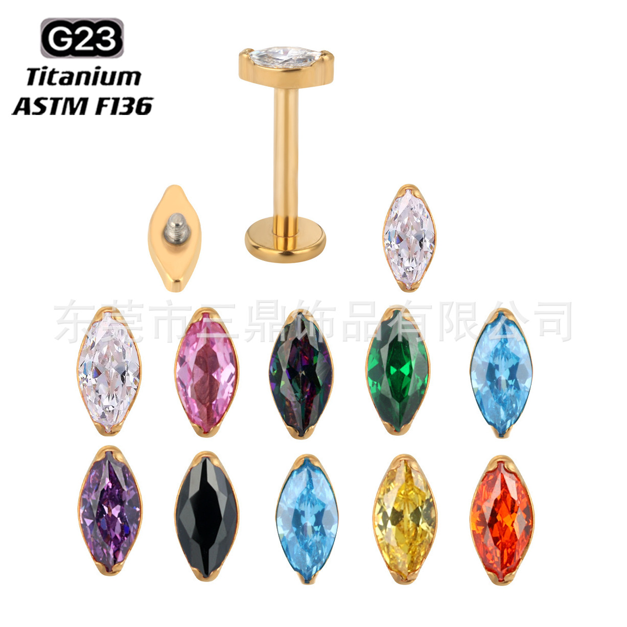 F136チタン金メッキ馬眼は5Aジルコン唇釘G23チタン合金穿刺アクセサリー金色耳骨釘部品をはめ込んだ