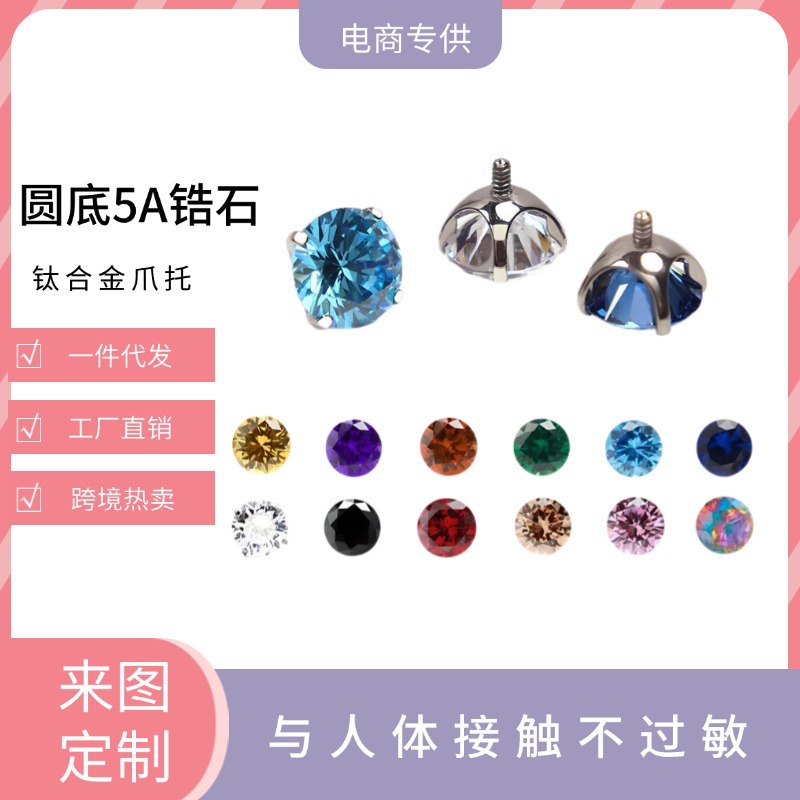 F136チタン合金の丸い底にジルコンのピアスを入れて、ヘッドG23チタンのピアスを交換します。