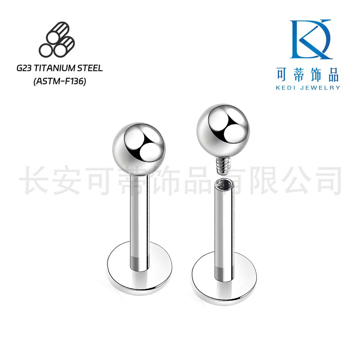 F136チタン合金ピアス内螺旋基礎釘平底円球金唇釘内歯耳骨釘穿刺アクセサリー