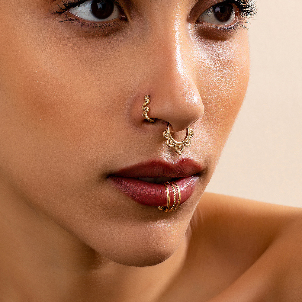 国境を越えて人気の316Lステンレス製ジュエリー、シンプルな蛇型のリップリングとイヤリング、個性的なチタン製ファッションアクセサリー