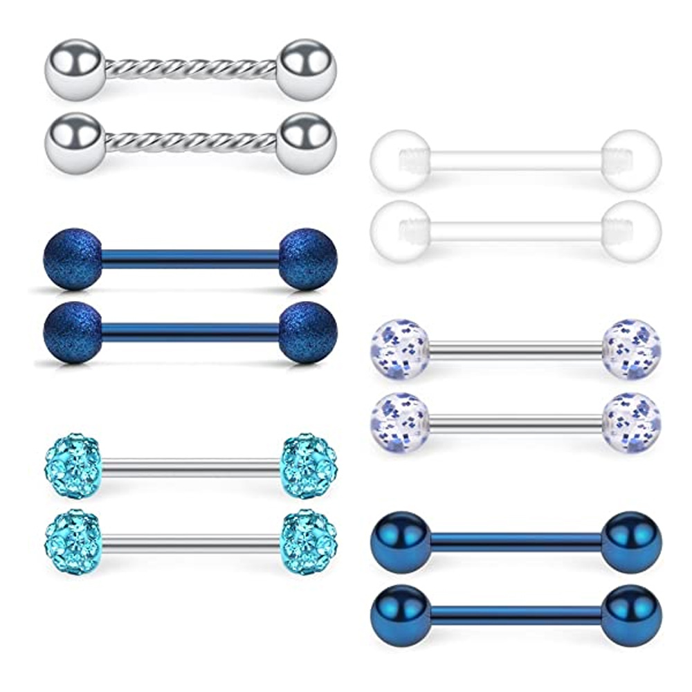 国境を越えた12点セットの青い舌釘セット14gフラッシュボール麻花棒透明アクリルステンレス穿刺