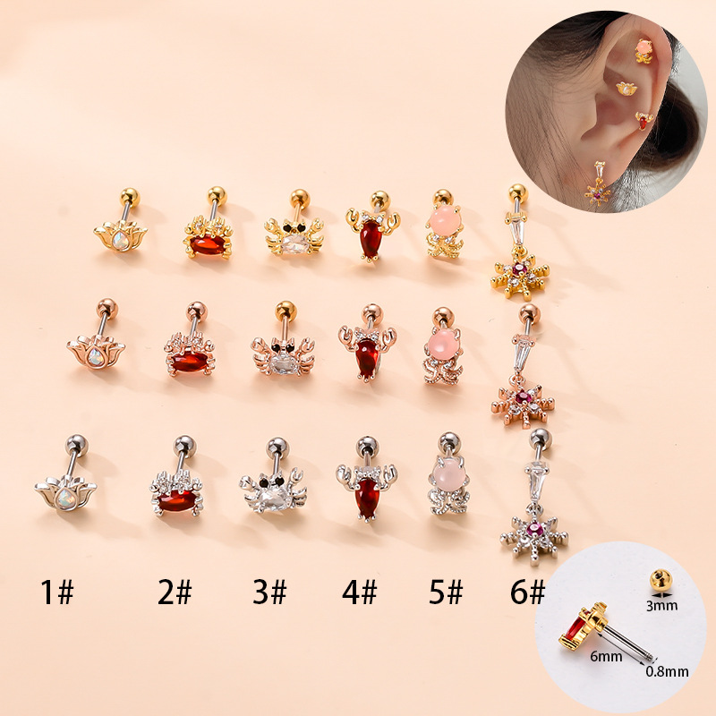 医療用チタン鋼韓国版笑顔白鳥熊桃心鍵十字雪花耳ペンダント耳骨ピアスed172