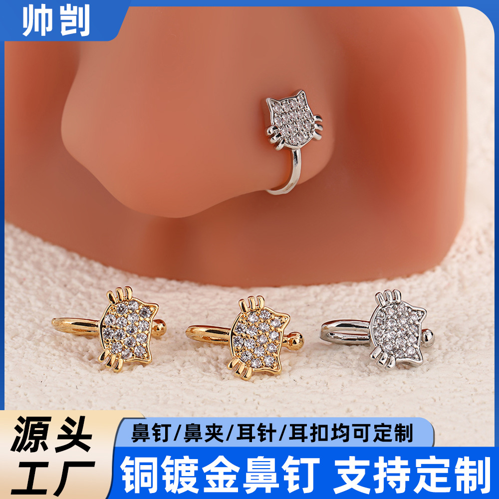クロスボーダーの可愛いkt猫の鼻の釘が甘くて、穴を開けない鼻の釘があります。欧米の高級感があります。