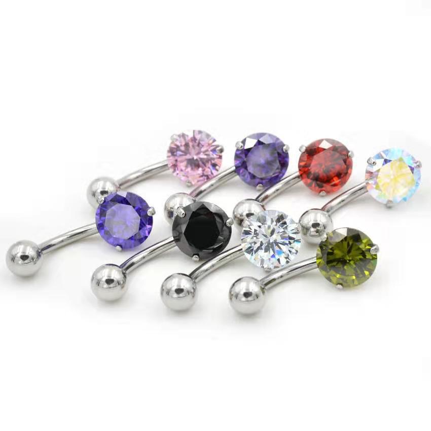 ステンレス8mm円形ジルコン臍環人体穿刺ボール付き臍釘アクセサリー
