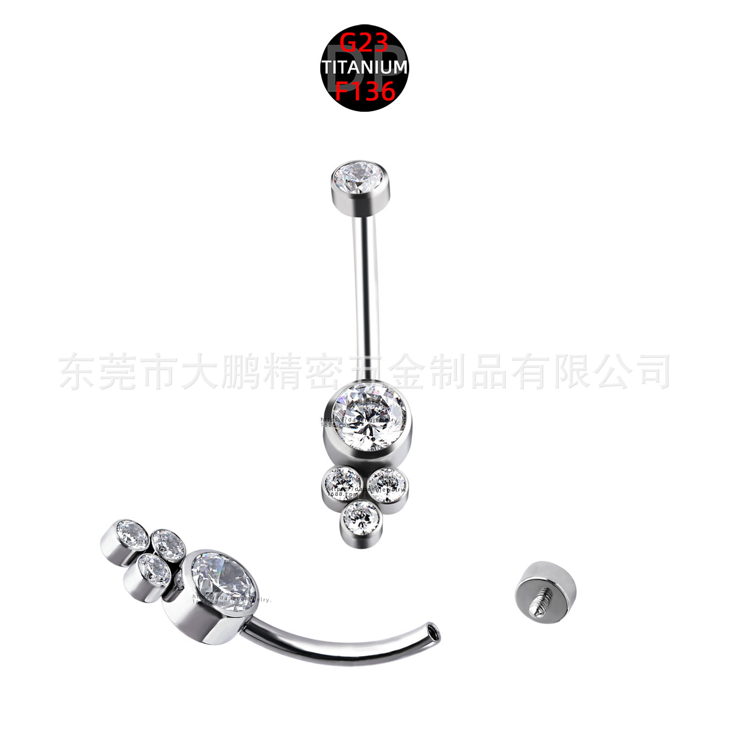 F136 チタン合金へそリングセットジルコン溶接ボール円筒形内歯曲げ棒へそ釘クロスボーダージュエリー