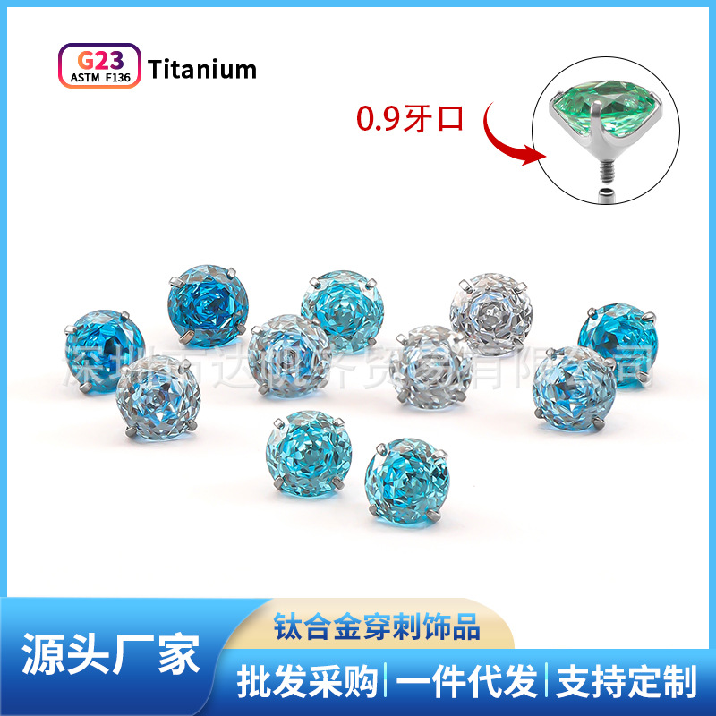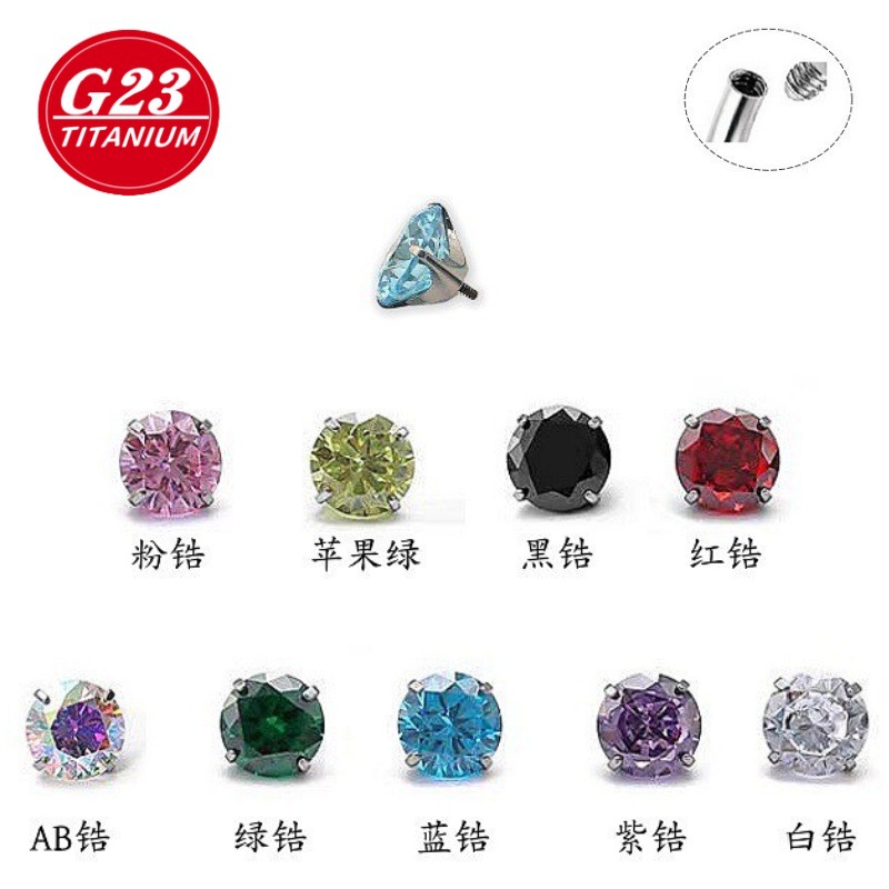 G23チタンピアス四爪はめ込み5Aジルコン耳骨釘部品外歯唇釘チタン合金穿刺アクセサリー部品