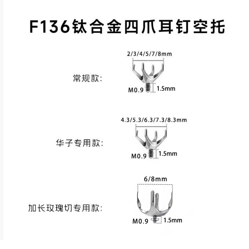 F136 チタン合金外歯リップネイルヘッド 4 爪空サポート外ねじリップネイル鼻ネイル耳骨ネイルピアスジュエリーアクセサリー