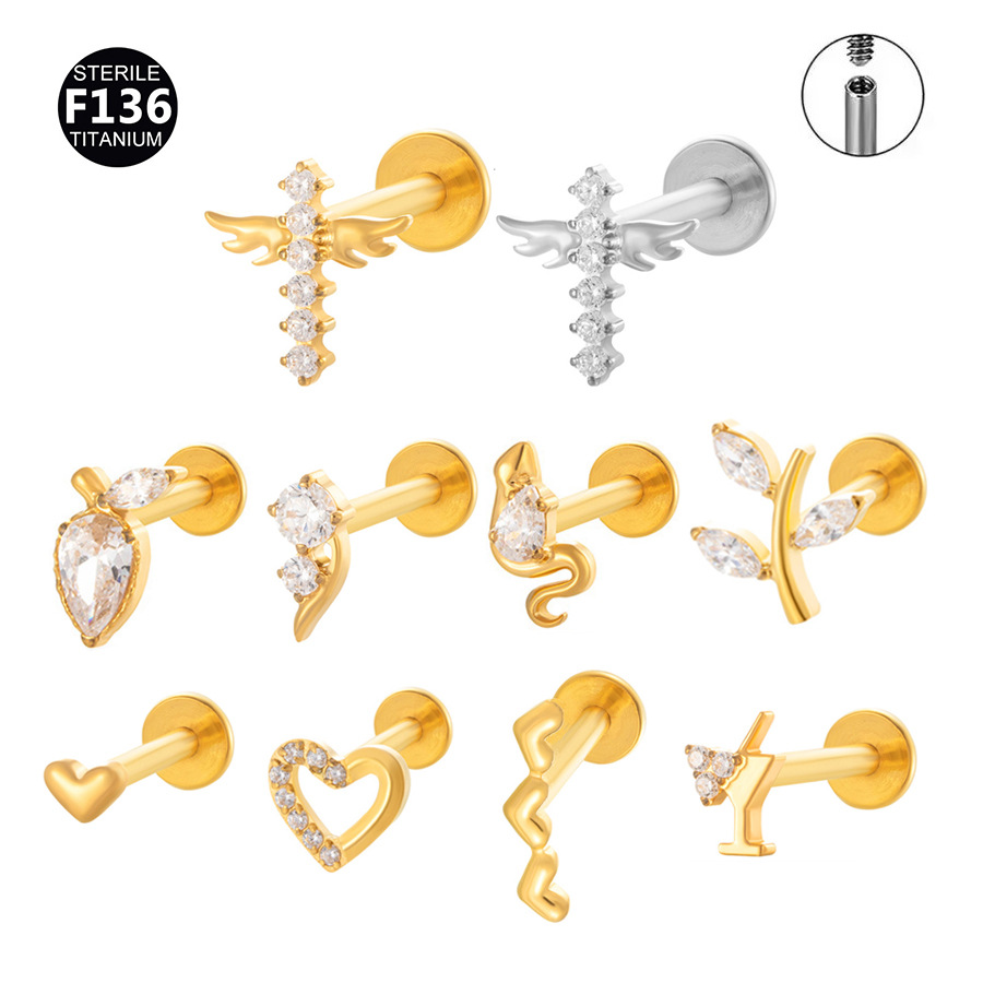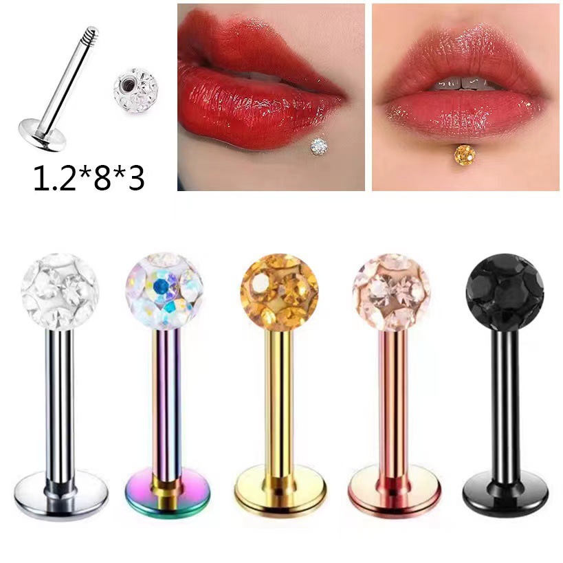 F136チタン合金ピアスバースト5Aジルコン欧米国境を越えて人気のリップピアス耳垂耳骨ピアス女性