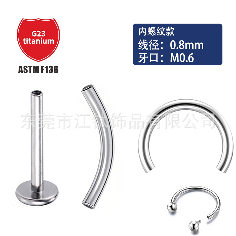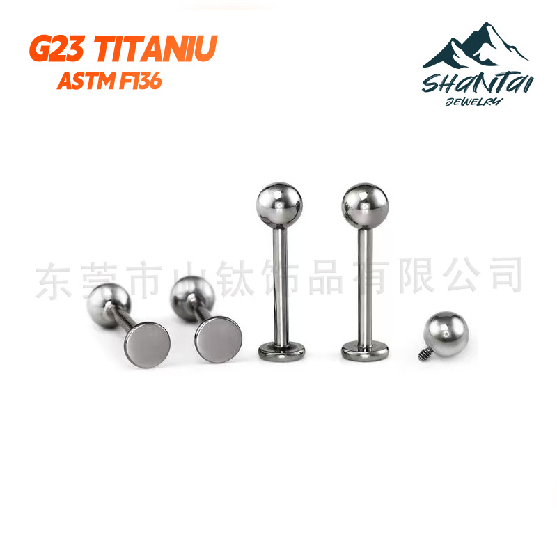 F136チタン合金埋め込み式ピアス、リップピアス、舌ピアス、内ネジ平底、縁取り加工、穴あけジュエリー、越境人気商品
