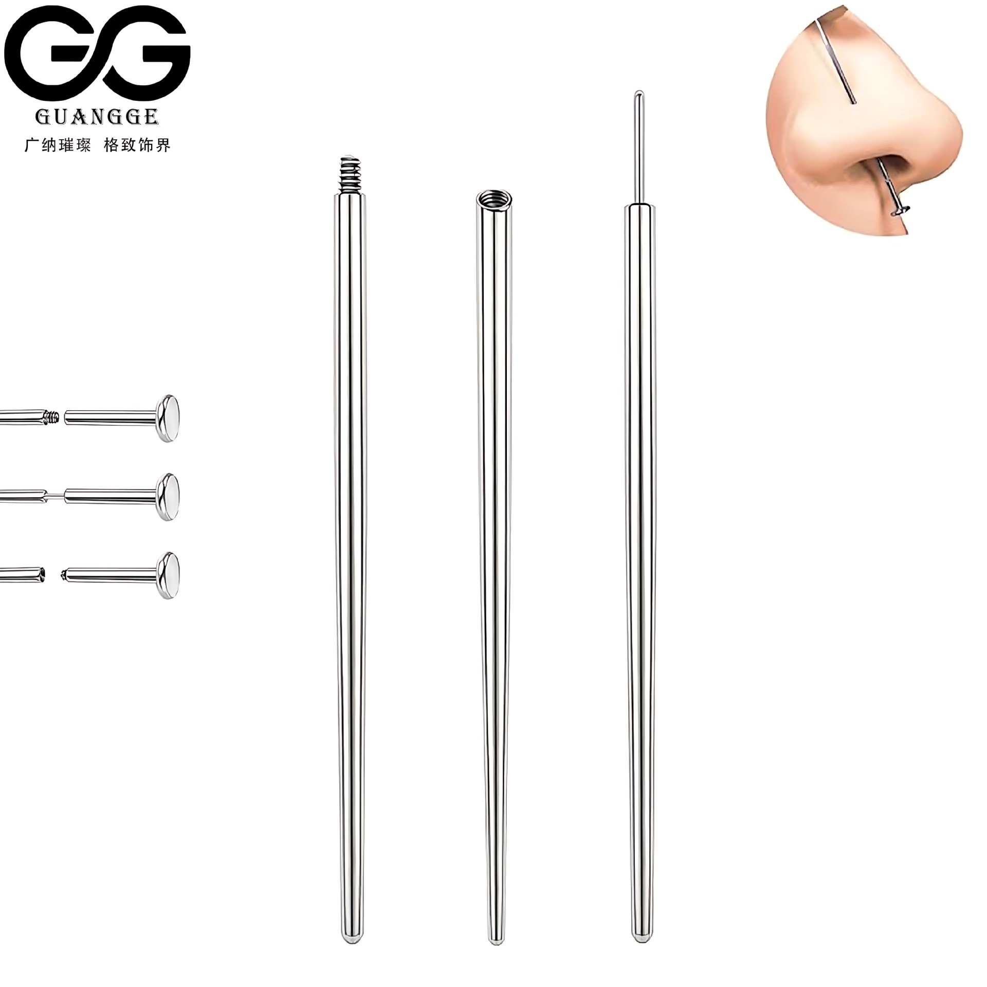 ステンレス穿刺ガイドリップピン鼻釘ピアスガイドロッド使い捨て人体穿孔アクセサリー補助ツール