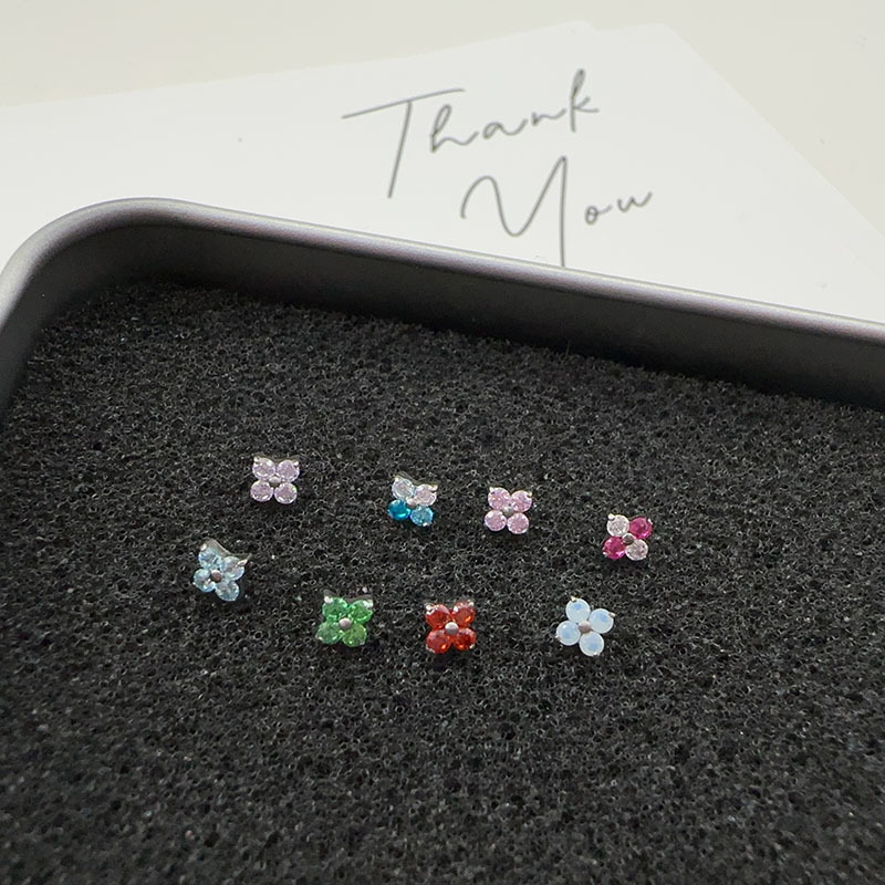 ASTM F136 チタン合金四つ葉のクローバー ジルコン ダイヤモンド リップ ネイル ヘッド手投げ耳骨ネイル ピアス ジュエリー