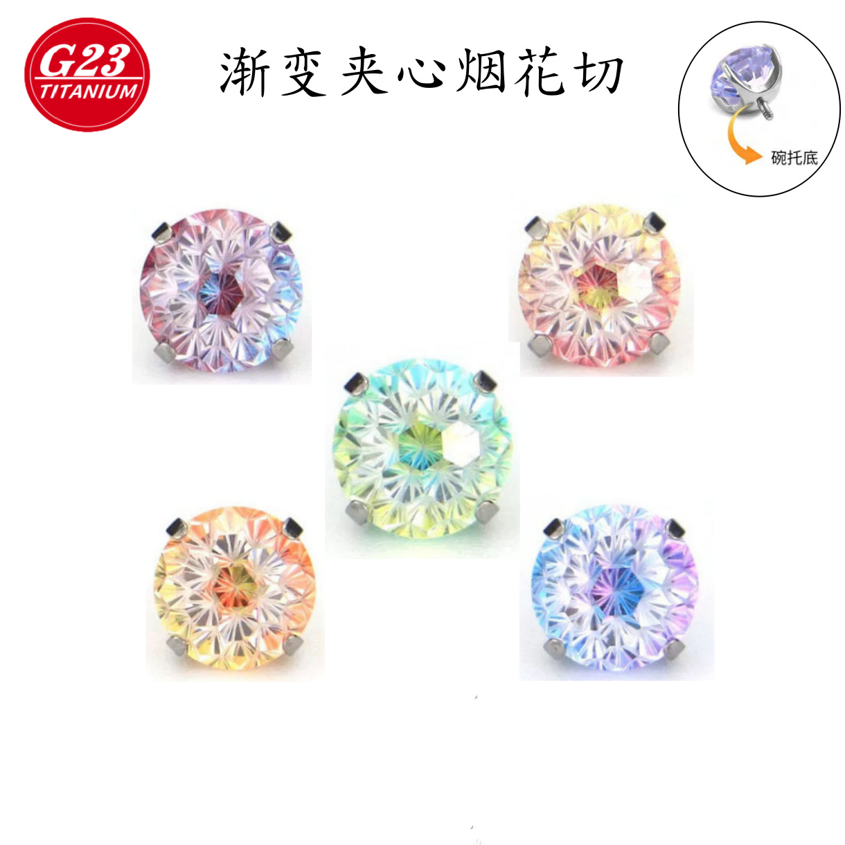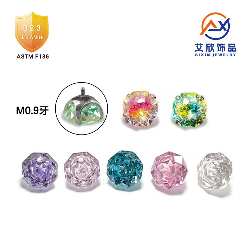 F136ピアスジュエリー、ヘッドボウルベース、爪留め、八角形グラデーションハンドブーケジルコン、6mmG23チタン合金イヤリング、ドリルヘッド