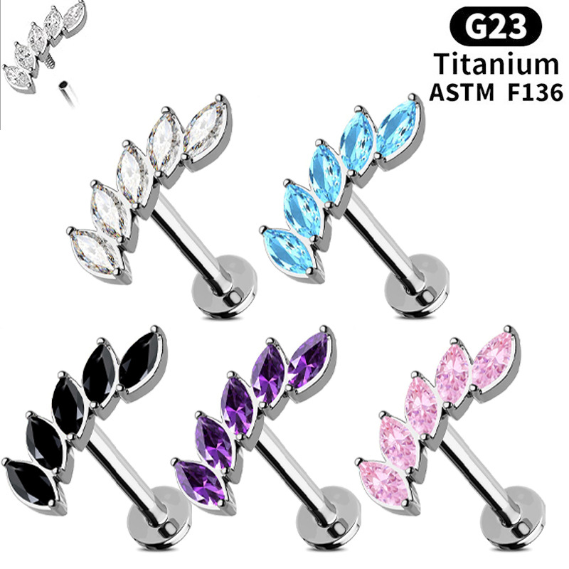 クロスボーダー F136 チタン合金リップネイルイヤリング 5 マーキスジルコンマルチカラーシンプルでファッショナブルなピアスジュエリー卸売