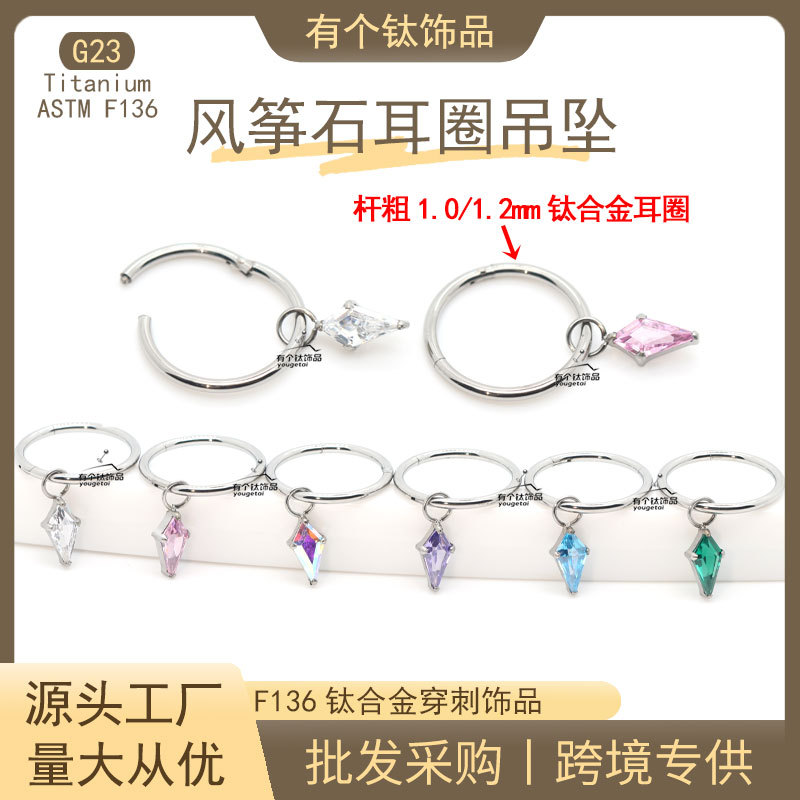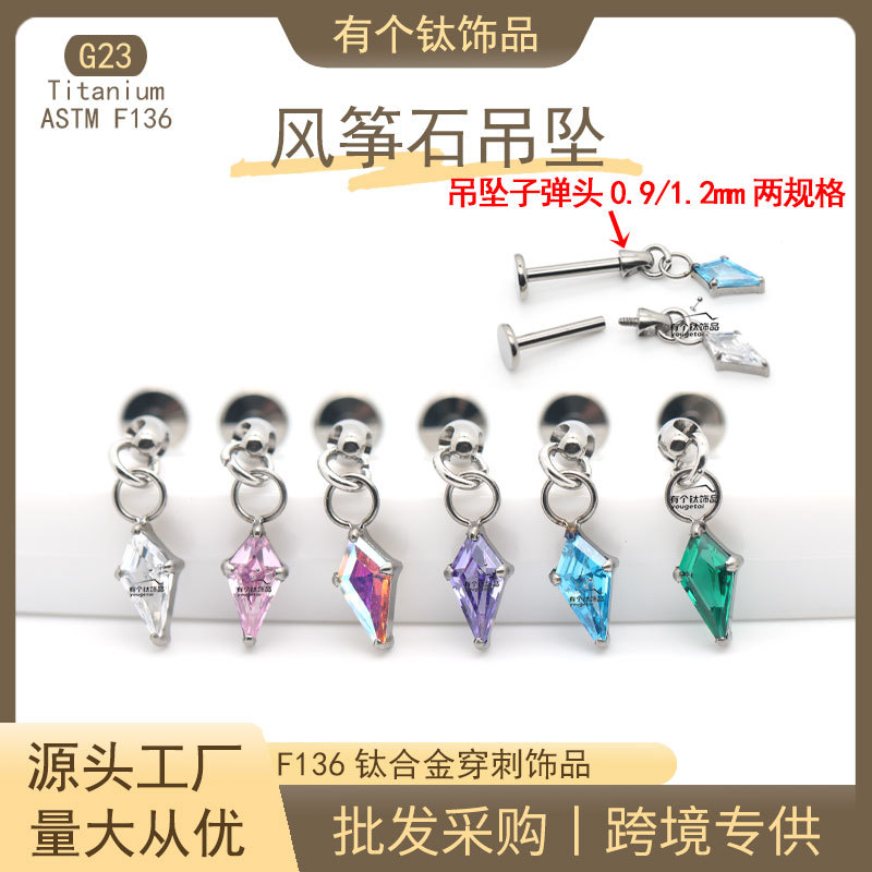 F136チタン凧石ジルコンひし形ピアスリップピアスピアスピアスピアスアクセサリーペンダントクロスボーダー電気商