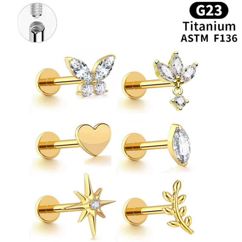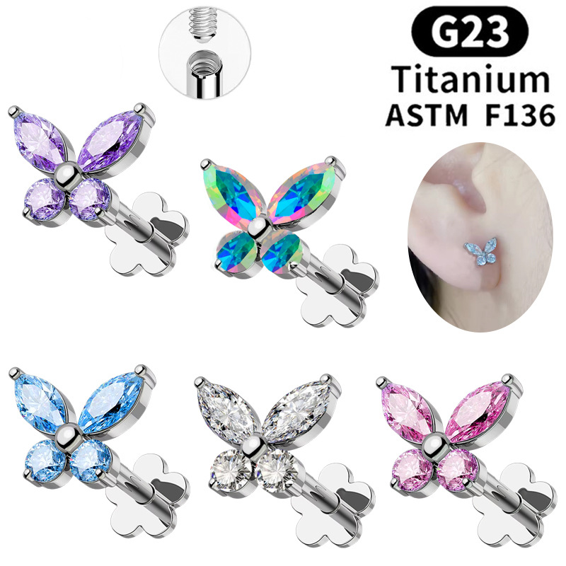 クロスボーダー F136 チタン合金耳スタッド、リップスタッド、耳骨スタッド、蝶型雌ねじイヤリング、ピアスジュエリー卸売