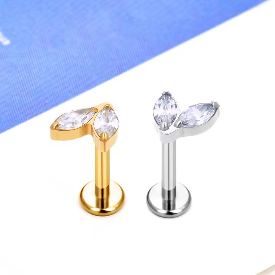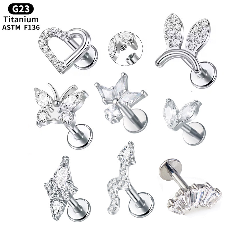 クロスボーダー F136 チタン合金イヤリングとリップネイル、さまざまなスタイル、蝶の扇形のジルコン、就寝時にピアスを外す必要がなく、ピアスジュエリー
