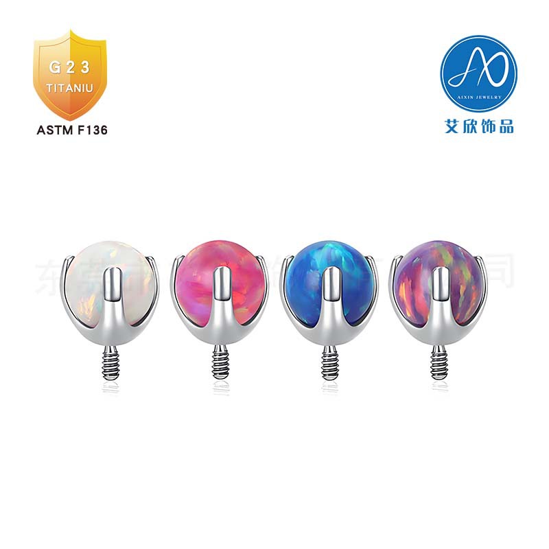 チタン合金オーロラオパールボールリップネイルインナースパイラルイヤリングアクセサリーf136三爪ゼリーオパールボール