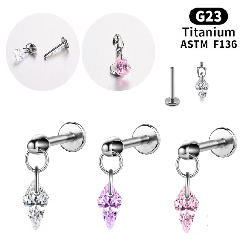 DIY手作りピアスジルコン吊りリップピアスG23チタン合金空つかみ替え部品耳棒ピアス